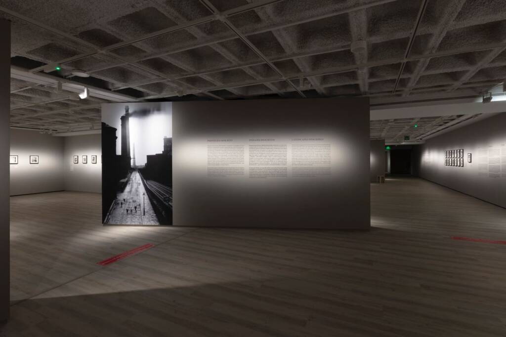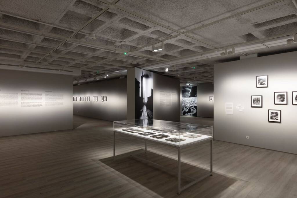 Reportatge social, retrat, nu i paisatge s’organitzen amb reproduccions de gran format que contrasten amb els originals en blanc i negre, sobre un fons neutre.